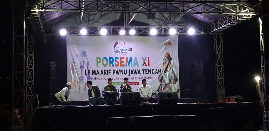 Temanggung, Maarifnujateng.or.id – Pekan Olahraga dan Seni Ma’arif (Porsema) XI LP Ma’arif PWNU Jateng selain menggelar lomba olahraga dan seni, baru kali ini dilakukan kegiatan berbeda. Salah satunya terlaksananya Ma’arif Bersholawat di alun-alun Temanggung, Rabu malam (26/6/2019). Kegiatan ini terlaksana sejak 24 Juni 2019.