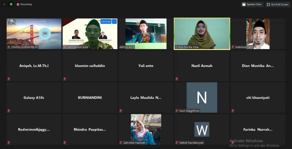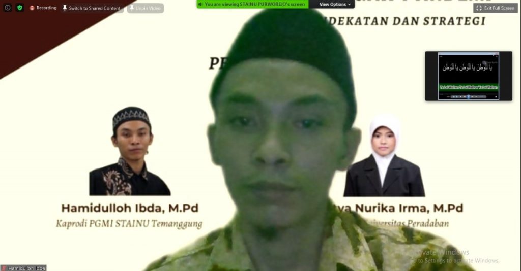 Purworejo – STAINU Purworejo melalui LP3M menggelar webinar bertajuk “Menguatkan Literasi di Tengah Pandemi” yang menghadirkan dua pemateri. Pertama, dosen Universitas Peradaban Cintya Nurika Irma. Kedua, dosen dan Kaprodi PGMI STAINU Temanggung Hamidulloh Ibda.