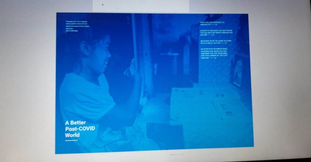 Sementara pada halaman 62, Millah ditulis “Gadis berusia dua belas tahun dengan seorang disabilitas intelektual menerima panggilan video darinya guru saat belajar di rumah di Ungaran, Jawa Tengah.”