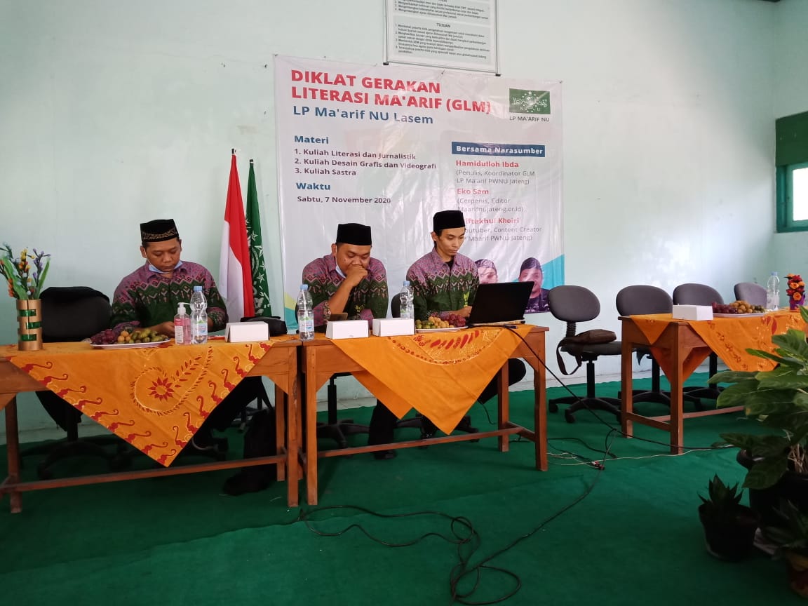 Tepat pukul 09.00 WIB, Sabtu (7/11/2020), acara diklat literasi ini dimulai dan disambut juga oleh Ketua LP Ma’arif NU Lasem Kiai Nur Hasan, dalam sambutannya menuturkan literasi sebenarnya sudah dilakukan sejak zaman para pendiri NU, seperti KH. Hasyim Asy’ari yang telah melahirkan banyak sekali kitab dan masih dikaji sampai saat ini.