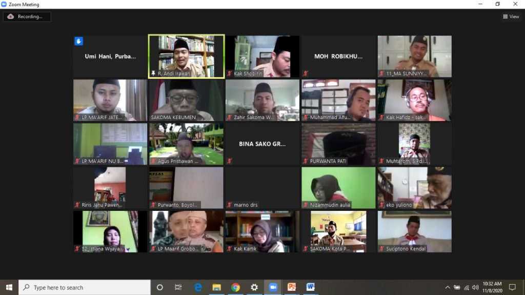 Semarang, Maarifnujateng.or.id – SAKO Pramuka Ma’arif NU Jawa Tengah menggelar Webinar Sosialisasi Penggunaan Syarat Kecakapan Umum (SKU) Pramuka Terintegrasi Ahlussunah wal Jama’ah dengan bersama SAKO Pramuka Ma’arif dari berbagai cabang yang ada di Jawa Tengah (08/11).