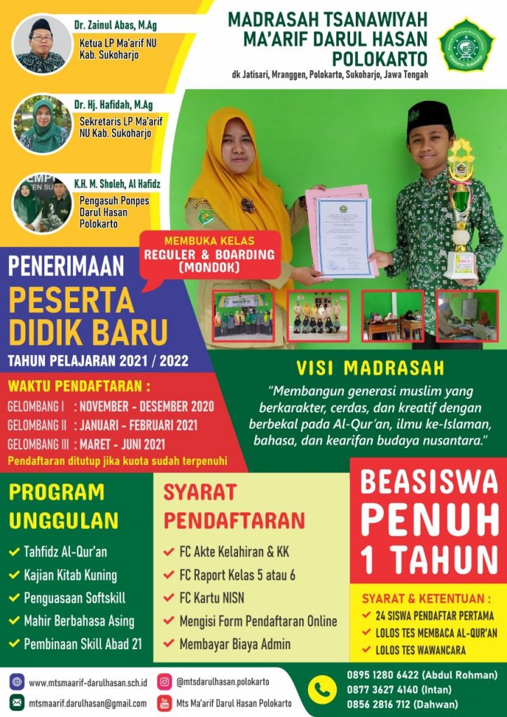 Pada tahun pelajaran 2021-2022, MTs Maarif Darul Hasan menerima siswa sebanyak 22 siswa yang berasal dari Sukoharjo, Wonogiri, Surakarta, dan Karanganyar. Jumlah siswa baru ini meningkat tiga kali lipat, dibanding tahun ajaran sebelumnya yakni 7 siswa baru.