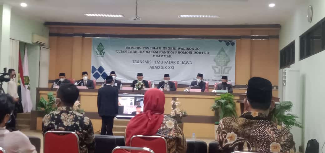 Semarang – Pengurus Lembaga Pendidikan Ma’arif NU PWNU Jawa Tengah Mu’ammar, berhasil mempertahankan disertasinya berjudul “Transmisi Ilmu Falak Di Jawa Abad XIX-XXI” pada Selasa (28/12/2021). Muammar berhasil mempertahakan disertasi itu di hadapan dewan penguji yaitu Prof. Dr. H. Imam Taufiq, M.Ag., Dr. H. M. Sulthon, M.Ag., Prof. Dr. H. Muslich, MA., Dr. H. Ahmad Izzudin, M.Ag., Prof. Dr. H. Susiknan Azhari, Drs. H. Slamet Hambali, M.S.I., Dr. H. Muhyar Fanani, M.Ag., dan Dr. Rokhmadi, M.Ag., pada Program Doktor Studi Islam Pascasarjana Universitas Negeri Walisongo Semarang.