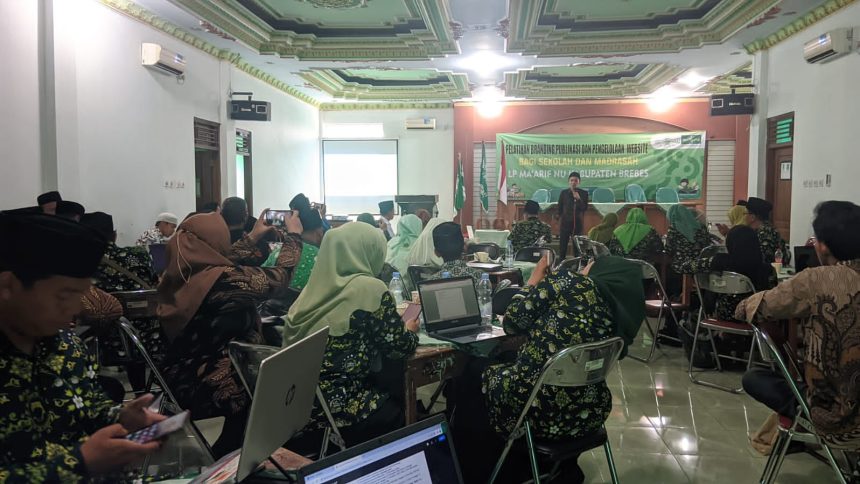 Brebes – Lembaga Pendidikan Ma’arif NU Kab. Brebes menggelar pelatihan Branding, Publikasi dan pengelolaan website. Pelatihan tersebut dilaksanakan di Gedung NU Kab. Brebes yang dimulai pada Rabu 23 November 2023. Hadir narasumber pertama Koordinator Gerakan Literasi Ma’arif (GLM) LP. Ma’arif NU PWNU Jawa Tengah Hamidulloh Ibda yang mengisi strategi branding madrasah dan sekolah Ma’arif.