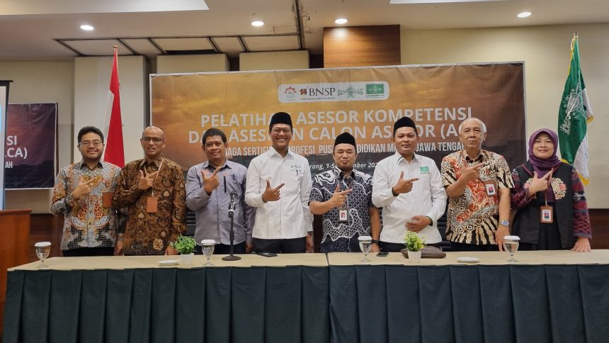 Semarang, Maarifnujateng.or.id – Lembaga Pendidikan Ma`arif NU Jawa Tengah melalui Lembaga Sertifikasi Profesi (LSP) P2 Ma`arif menggelar kegiatan Pelatihan Asesor Kompetensi dan Asesmen Calon Asesor (ACA) LSP P2 Ma`arif NU Jawa Tengah. Kegiatan berlangsung selama lima hari tersebut dilaksanakan pada 1-5 November di Hotel Muria Semarang. Hadir dalam pembukaan kegiatan, Sekretrais PWNU Jawa Tengah KH Fathurrohman, Ketua Lembaga Pendidikan Ma`arif NU Jawa Tengah Fakhruddin Karmani, dan Anggota Badan Nasional Sertifikasi Profesi (BNSP) Miftahul Aziz sekaligus membuka acara.