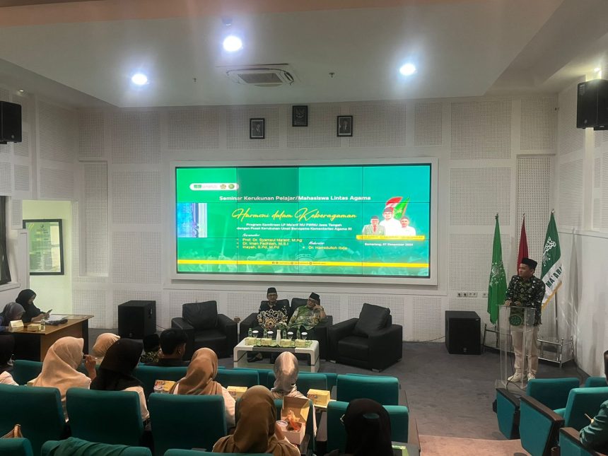 Semarang, Maarifnujateng.or.id – Lembaga Pendidikan (LP) Ma’arif NU PWNU Jawa Tengah bekerjasama dengan Pusat Kerukunan Umat Beragama Kementerian Agama RI menggelar Seminar Kerukunan Pelajar/Mahasiswa Lintas Agama bertajuk “Harmoni dalam Keberagaman” yang bertempat di Universitas Wahid Hasyim Semarang pada Sabtu, 7 Desember 2024.