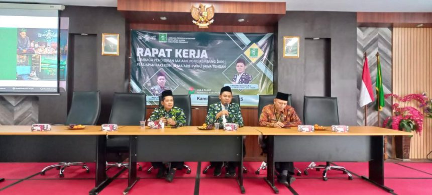 Rapat Kerja diikuti oleh 65 Kepala Madrasah dan Sekolah Ma’arif NU cabang Rembang, Rapat Kerja diselenggarakan dalam rangka sosialisasi program Ma’arif NU PCNU Rembang dan persiapan Rapat Kerja Dinas Ma’arif NU Jateng yang rencana dilaksanakan pada Sabtu (18/01/2025) besok di Gedung Haji Kab. Rembang.