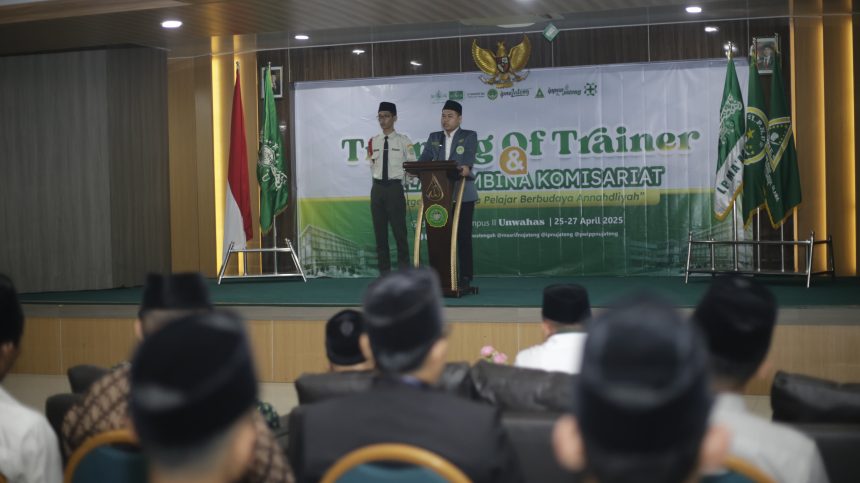 Semarang, Maarifnujateng.or.id — Ketua PW IPNU Jawa Tengah, Rekan Muhammad Irfan Khamid, menyampaikan sambutan yang sarat makna dalam kegiatan Training of Trainer (TOT) dan Diklat Pembina Komisariat yang diselenggarakan oleh PW IPNU dan IPPNU Jawa Tengah, Jumat–Minggu, 25–27 April 2025, di Universitas Wahid Hasyim (UNWAHAS) Semarang.