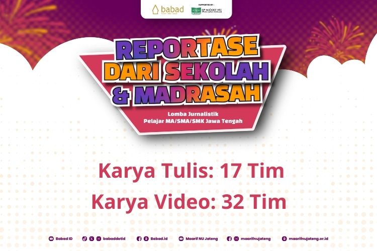 SEMARANG, Maarifnujateng.or.id – Pendaftaran lomba Reportase dari Sekolah-Madrasah yang diselenggarakan oleh babad.id bekerja sama dengan LP Ma’arif NU PWNU Jawa Tengah resmi ditutup sejak 30 April 2025 lalu. Ada total 49 tim yang ikut serta dalam adu keterampilan di bidang jurnalistik ini.