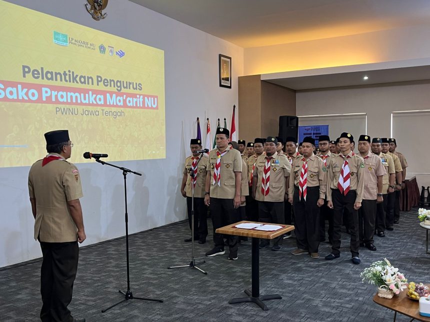 Semarang, Maarifnujateng.or.id – Pengurus Satuan Komunitas Pramuka Ma’arif Nahdlatul Ulama (Sakomanu) Jawa Tengah masa bhakti 2024-2029 resmi dilantik pada Sabtu (10/5/2025) oleh Ketua Kwartir Daerah Gerakan Pramuka Jawa Tengah bertempat di Aula PT Penerbit Erlangga Cabang Semarang.
