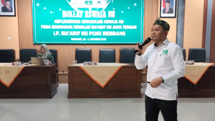 Rembang, Maarifnujateng.or.id – Lembaga Pendidikan Ma’arif NU PCNU Rembang mengawali Diklat Aswaja NU setelah mengalami penyesuaian kurikulum dan materi-materi Diklat yang lebih relevan untuk diterapkan dalam madrasah/sekolah Ma’arif NU di Jawa Tengah. Kegiatan dilaksanakan di Kantor Kementerian Agama Kab. Rembang pada Jum’at dan Sabtu (10-11/10/2025).