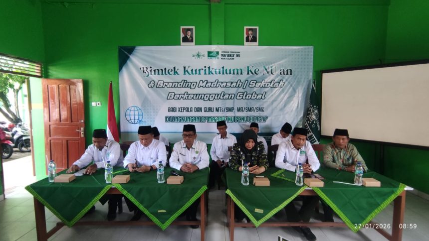 CILACAP, Maarifnujateng.or.id – Dalam upaya melakukan reorientasi arah pendidikan berbasis nilai lokal dan global, Lembaga Pendidikan (LP) Ma’arif NU Cilacap menggelar Bimbingan Teknis (Bimtek) Kurikulum Ke-NU-an dan Branding Madrasah/ Sekolah Berkeunggulan pada Selasa (27/1). Bertempat di MTs Ma’arif 01 Kroya, Kegiatan ini bukan sekadar pertemuan administratif, melainkan sebuah ikhtiar intelektual untuk membedah filosofi pendidikan yang memadukan antara keteguhan teologis (al-muhafadzatu ‘ala qadimis shalih) dan inovasi transformatif (al-akhdzu bil jadidil ashlah).